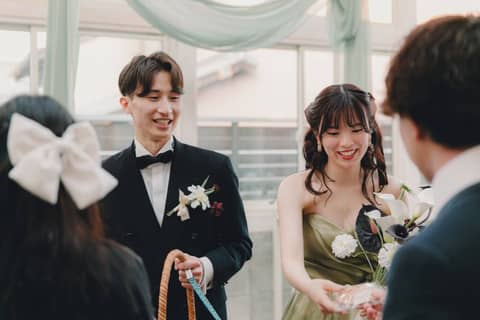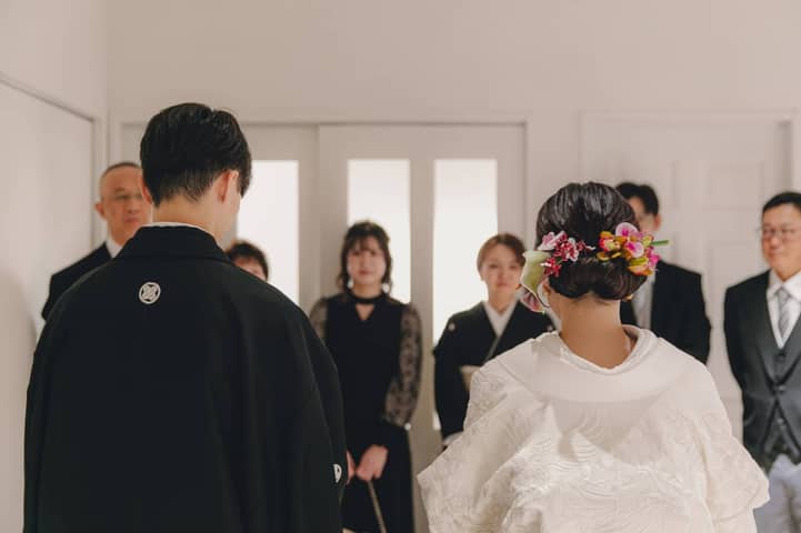 一部では、家族や親族へのお披露目や顔合わせの時間を大切に。小さかった頃の話など懐かしい思い出と共に感謝の気持ちを込めたおもてなしを